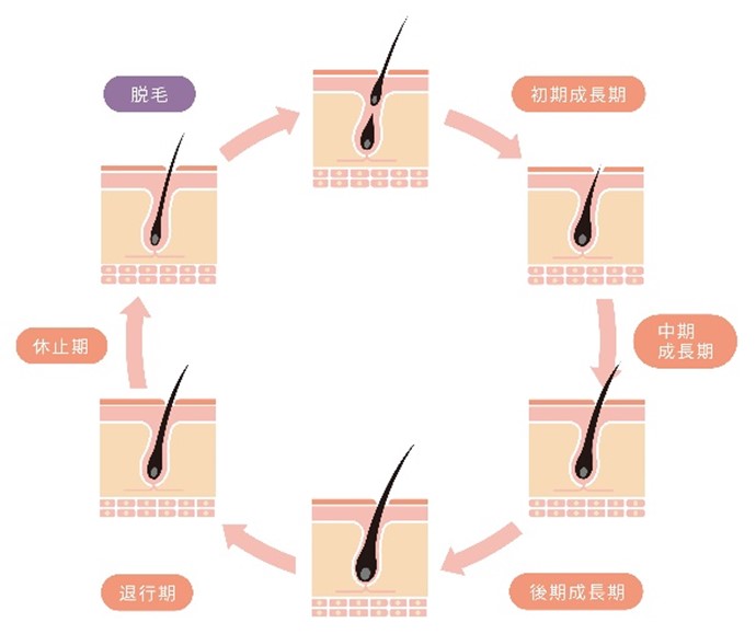 ヘアサイクルの6つの時期には、以下のような特徴があります。
